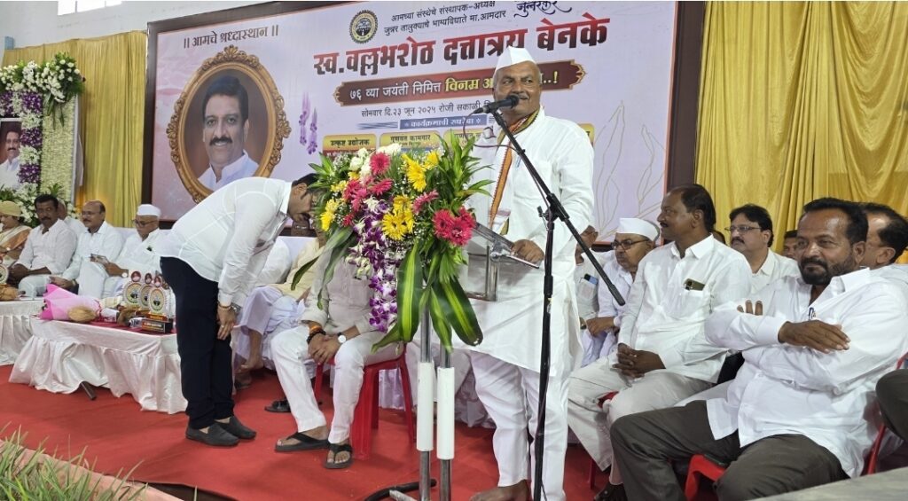 नारायणगाव: ( प्रतिनिधी ) कृष्णा खोरे महामंडळाचे माजी उपाध्यक्ष व जुन्नर तालुक्याचे माजी आमदार वल्लभ बेनके यांच्या वीस वर्षाच्या आमदारकीच्या काळात जुन्नर तालुका सुजलाम सुफलाम झाला. एक शिस्तप्रिय आमदार व प्रशासनावर पकड असलेला नेता अशी त्यांची ओळख आजही जनतेच्या मनात कायम आहे, असे प्रतिपादन पुणे जिल्हा परिषदेचे माजी उपाध्यक्ष शरद लेंडे यांनी केले. माजी आमदार वल्लभ बेनके यांची 76 वी जयंती जुन्नर तालुका औद्योगिक सहकारी वसाहत कांदळी येथे आज (दि. 23) साजरी झाली. यावेळी माजी आमदार अतुल बेनके, जुन्नर तालुका औद्योगिक वसाहतीचे अध्यक्ष अमित बेनके, पुणे जिल्हा परिषदेचे माजी अध्यक्ष देवराम लांडे, माजी उपाध्यक्ष पांडुरंग पवार,माजी उपाध्यक्ष शरद लेंडे,गणपत फुलवडे,जिल्हा परिषदेचे माजी सदस्य अंकुश आमले, मोहित ढमाले, माऊली कुऱ्हाडे, राष्ट्रवादी काँग्रेस शरदचंद्र पवार पक्षाचे तालुकाध्यक्ष तुषार थोरात, जिल्हा दूध संघाचे संचालक बाळासाहेब खिलारी, भाऊ देवाडे, शिवसेनेचे नेते बाबा परदेशी, जुन्नर पंचायत समितीचे माजी सभापती बाजीराव ढोले, विघ्नहर चे माजी संचालक गुलाब नेहरकर,काळू शेळकंदे, मारुती वायाळ जुन्नर नगरपालिकेचे माजी उपनगराध्यक्ष फिरोज पठाण, ग्रामोन्नती मंडळाचे कार्याध्यक्ष अनिल मेहेर, तानाजी बेनके आदी मान्यवर उपस्थित होते. प्रारंभी माजी आमदार वल्लभ बेनके यांच्या प्रतिमेचे पूजन करून त्यांच्या प्रतिमेला अभिवादन करण्यात आले. तसेच संस्थेच्या आवारामध्ये वृक्षारोपण करण्यात आले.. यावेळी बोलताना शरद लेंडे म्हणाले की, वल्लभ बेनके यांनी कार्यकर्त्यांना खूप जीव लावला. शरद पवार यांचे ते विश्वासू सहकारी होते. माझ्यासारख्या कार्यकर्त्याला पक्षाचे तालुका अध्यक्षपद अनेक वर्षे त्यांच्यामुळे मिळाले. एवढेच नाही तर जिल्हा परिषदेचे उपाध्यक्षपद त्यांच्यामुळेच मिळाले . त्यांनी जुन्नर तालुक्यातील जनतेच्या हिताचे अनेक उपक्रम राबवले. चिल्हेवाडी धरणाच्या बंद पाईप लाईनचे काम त्यांच्या काळात मंजूर झाले. बेनके यांची प्रशासनावर प्रचंड पकड होती. सामान्य जनतेचे काम मार्गी लावण्यासाठी त्यांचा नेहमीच अट्टहास राहिला. जिल्हा परिषदेचे माजी अध्यक्ष देवराम लांडे म्हणाले की, माझ्यासारख्या सामान्य कार्यकर्त्याला वल्लभ बेनके यांनी मोठा आधार दिला. मला जिल्हा परिषद अध्यक्ष करण्यासाठी त्यांनी पक्ष नेतृत्वाशी संघर्ष केला. माझ्या जडणघडणीमध्ये त्यांचा सिंहाचा वाटा राहिला आहे. त्यांचे उपकार मी कधीच विसरू शकत नाही.वल्लभ बेनके यांच्यासारखे नेतृत्व पुन्हा होणे नाही. यावेळी बोलताना उद्धव बाळासाहेब ठाकरे शिवसेनेचे नेते बाबा परदेशी म्हणाले की, काम करणाऱ्या कार्यकर्त्याला नेहमी ताकद 