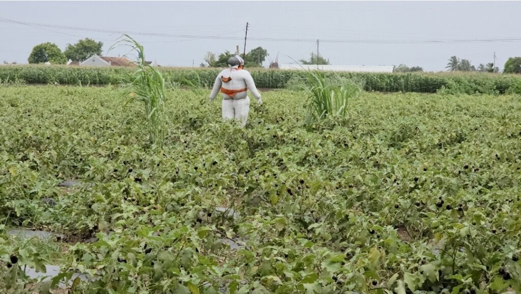 नारायणगाव (प्रतिनिधी ) शेतात केलेल्या पिकाचे पशु पक्षी यांच्यापासून संरक्षण व्हावे म्हणून शेतकरी वेगवेगळ्या प्रकारच्या आयडिया लढवत असतो. प्रत्येक वेळेस शेतामध्ये उपस्थित राहून पिकाच राखण करणं शेतकऱ्याला शक्य होत नाही. त्यावेळी शेतकरी मानव रुपी बुजगावणे तयार करून पिकाच्या बाजूला उभे करून ठेवतो. जेणेकरून पिकावर पशु पक्षाचा हल्ला होणार नाही. शेतामध्ये पिकवलेल्या पिकाला बाजार भाव मिळतोच याची खात्री नाही किमान उत्पादन चांगलं यावं. पशु पक्ष्यापासून त्याचे संरक्षण व्हावं यासाठी शेतकरी विशेष खबरदारी घेत असतो. आळे परिसरातील एका शेतकऱ्याने आपल्या वांग्याच्या शेतात बुजगावणे तयार करून उभे केले आहे. या बुजगावण्यामुळे पिकामध्ये पशुपक्ष्यांचा उपद्रव कमी होण्यास मदत होत आहे. दरम्यान पूर्वी सर्रास पिकांचे रक्षण करण्यासाठी बुजगावण्याचा प्रयोग केला जात होता. परंतु आधुनिक शेती करण्याचे प्रमाण वाढल्यापासून अशा उपाय योजनेचा लोप झाल्याचे पहायला मिळत आहे. परंतु काही भागात पिकाचे नुकसान होऊ नये म्हणून शेतकरी शेतामध्ये बुजगावणे तयार करत असल्याचे पाहायला मिळत आहे. शेतकऱ्याच्या शेतातील पीक अनेक पशुपक्षी फस्त करीत असतात. सध्या उन्हाळी भुईमूग सर्वत्र पाहायला मिळतो. या पिकाचे नुकसान देखील खारुताई तसेच उंदीर,कोल्हे, ससे यांच्यापासून होत असते. त्याचबरोबर बाजरीचे पीक काढण्यापूर्वी कणसात दाना भरल्यावर पक्षाचे थवेच्या थवे या पिकावर ताव मारीत असतात. यावेळी सुद्धा शेतकरी पक्षांपासून बाजरी पिकाचे नुकसान होऊ नये म्हणून वेगवेगळे प्रयोग करत असतात. यामध्ये जुन्या ऑडिओ कॅसेटची रिळ पिकाच्या मधोमध बांधून होणाऱ्या आवाजामुळे पाखरं उडून जातात. व बाजरी पिकाचे नुकसान होण्यापासून बचाव होतो. काही शेतकरी तर बांबूला थाळा बांधून दुसऱ्या बाजूने त्या थाळ्यावर जोराचा आवाज होईल असे लाकडी पट्टी बांधून होणाऱ्या आवाजामुळे पक्षी उडून जातात. शेतकरी पिकाचे नुकसान टाळावं म्हणून यासाठी नेहमीच वेगवेगळे प्रयोग करीत असतो.