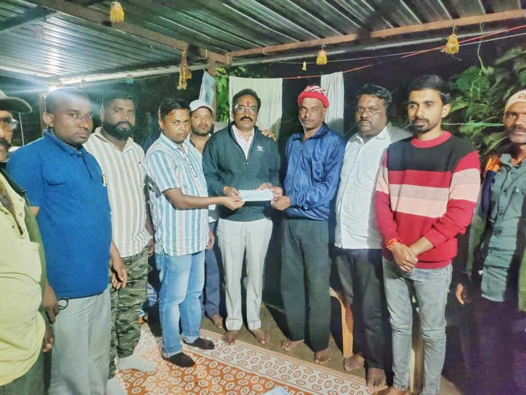 नारायणगाव : ( प्रतिनिधी ) खामगावच्या शिवेचीवाडी येथील आदिवासी ठाकर समाजातील स्व.आदित्य सुरेश काळे हा २१ वर्षीय तरुण सहकाऱ्याचे अपघात झाल्या नंतर त्याच्या कुटुंबाच्या भविष्यातील उदरनिर्वाहाच्या दृष्टीने सामाजिक बांधिलकी जपत या गावचे माजी उपसरपंच अजिंक्य घोलप यांनी तालुक्यातील सर्व घटकातील समाज बांधवांना मदतीचे आवाहन केले होते,त्या अनुषंगाने दत्ता गवारी,एड.ललित जोशी,किरण लोहकरे,मारुती वायाळ,डॉ.विनोद केदारी,संजय मोधे यांच्या पुढाकाराने मोठ्या प्रमाणात ऑनलाइन व रोख रक्कम स्वरूपात जी मदत जमा झाली ती सर्वच्या सर्व मदत काळे कुटुंबाकडे सुपूर्त करण्यात आली आहे. यावेळी मुक्तादेवी झांजपथकाचे अध्यक्ष हरिभाऊ केदारी,माजी सरपंच सुवर्णा जाधव,रंजना काळे,पाराजी केदारी,श्रीकृष्ण केदारी,सचिन डाके,झनकू बोऱ्हाडे,ओंकार घोलप,अमोल जाधव,कुसूम केदारी,बाळू मोधे,पप्पू मडके उपस्थित होते. स्थानिक नागरीक व जुन्नर तालुक्यातील दानशूर व्यक्तीच्या मदतीने 5 लाख 48 हजार 657 हजार रुपये या कुटुंबाला सुकृत करण्यात आले. दरम्यान अपघाताची घटना घडल्यानंतर राजकारण व जाती धर्माच्या पलीकडे जाऊन दवाखाना पोलीस स्टेशन,न्यायालय तसेच आजतागायत काळे कुटुंबाच्या सोबत उभे राहणाऱ्या सर्व समाज बांधवांचे यावेळी समन्वयक टीमने आभार व्यक्त केले.भविष्यात देखील अशी वेळ कुणावर येऊ नये आणि दुर्दैवाने आलीच तर पुन्हा एकदा आपण सर्व मंडळी निश्चित प्रमाणे त्या कुटुंबाच्या पाठीमागे उभे राहण्याचा प्रयत्न करूयात अशा भावना यावेळी व्यक्त केल्या. दरम्यान खामगावच्या सरपंच नीलम घोलप म्हणाल्या की, आदित्य काळे यांचे कुटुंब अतिशय गरीब असून या कुटुंबाला कोणाचाही आधार नव्हता. आमच्या गावातील तरुण एकत्र आले व इतरांनी पुढाकार घेऊन एवढी रक्कम आम्ही उभी करू शकलो भविष्यकाळामध्ये अशी वेळ कोणावरही यायला नको. या कुटुंबाच्या पाठीशी आमचं गाव भविष्यकाळात देखील खंबीरपणे उभे राहील.