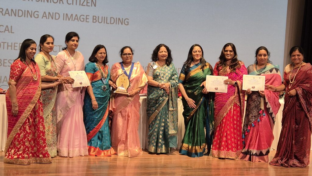 नारायणगाव : ( प्रतिनिधी) नारायणगाव (तालुका जुन्नर) येथील इनरव्हील क्लबला सिम्बॉयसिस भवन विमाननगर पुणे येथे नुकत्याच झालेल्या आय डब्लू सी च्या डिस्ट्रिक्ट असेंब्ली मीट कार्यक्रमात विविध पुरस्कारांनी सन्मानित करण्यात आले. यावेळी अनेक गावांच्या क्लबच्या महिलांचा उत्स्फुर्त सहभाग होता. इनरव्हील क्लब मार्फत चांगले काम करणार्या क्लबचा आणि पदावरील महिलांचा येथे सन्मान करण्यात आला. नारायणगाव क्लबला हॅपी स्कूल, मेडिकल, कॅन्सरवर आधारित उपाययोजना एन्व्हायरमेंट, महिला सबलीकरण ,जेष्ठ नागरिकांसाठी राबवलेले कार्यक्रम या सर्व प्रोजेक्टसाठी पुरस्कार देण्यात आला. इनरव्हील ग्रुपच्या गतवर्षीच्या अध्यक्षा सविता खैरे आणि सेक्रेटरी प्रीती शहा यांना बेस्ट प्रेसिडेंट आणि सेक्रेटरी जोडीच्या मानकरी म्हणून गौरवण्यात आले. यावेळी संस्थापक अंजली खैरे, अध्यक्ष समृद्धी वाजगे, सचिव सुजाता भुजबळ, नंदा मुथ्था, रूचिता वाघ, वर्षा तांबे उपस्थित होत्या.