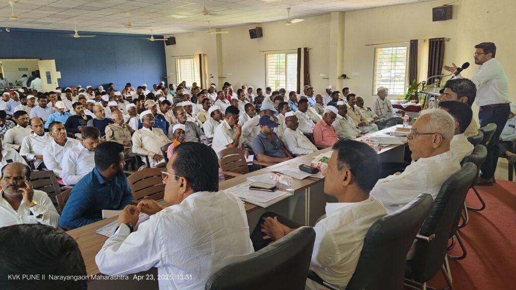 कृषी विज्ञान केंद्र (केव्हीके), नारायणगाव येथे “केळी क्लस्टर विकास आणि निर्यातक्षम केळी उत्पादन तंत्रज्ञान” या विषयावर एक दिवसीय कार्यशाळेचे आयोजन करण्यात आले होते. या कार्यशाळेत बोलताना, कृषी तंत्रज्ञान तज्ञ श्री. रुजित मेहेर यांनी आधुनिक केळी लागवडीत आर्टिफिशियल इंटेलिजन्स (एआय) आणि इंटरनेट ऑफ थिंग्ज (आयओटी) तंत्रज्ञानाच्या महत्त्वपूर्ण भूमिकेवर भाष्य केले.