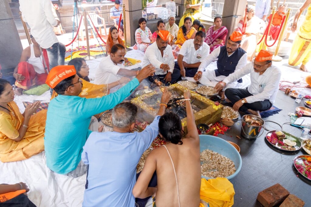 नारायणगाव :(प्रतिनिधी )अष्टविनायकांतील मुख्य स्थान असलेल्या श्री क्षेत्र ओझर येथे पहाटे ५ वाजता श्री विघ्नहर मंदिरात पूजा करून दर्शनासाठी मंदिर खुले करण्यात आले. देवस्थान ट्रस्ट ने विनायकी चतुर्थी व शारदीय नवरात्री निमित्त”दुर्गा नवचंडी यागाचे आयोजन केले होते . श्री विघ्नहर गणपती देवस्थान ट्रस्ट चे अध्यक्ष बाळासाहेब कवडे व विश्वस्त मंडळ यांच्या नियोजनाखाली दुर्गा नवचंडी याग संपन्न झाला. सकाळी ७.०० वा. आरती संपन्न झाल्यानंतर ठीक ८ वा.नवचंडी यागाचे पूजन करून यागाला गणेशपूजनाने सुरुवात झाली. यागासाठी एकूण एकवीस मान्यवर जोडपी उपस्थित होती. मान्यवर यांची राहण्याची सुविधा भक्तभवन मध्ये करण्यात आली. मान्यवरांना देवस्थान ट्रस्ट च्या महाप्रसादालयात भोजनाची व्यवस्था करण्यात आली होती. सर्व मान्यवर यांना देवस्थान ट्रस्ट च्या वतीने सोहळे परिधान करून विशेष पुरोहित यांच्या उपस्थितीत शारदीय नवरात्री निमित्त”दुर्गा नवचंडी ससंपन्न झाला. सर्व मान्यवर यांचा सत्कार देवस्थान ट्रस्ट च्या वतीने करण्यात आला. उपस्थित मान्यवर यांनी देवस्थान ट्रस्ट चे विशेष आभार मानले व देवस्थान ट्रस्ट ने भाविकांना उपलव्ध केलेल्या सुखसोई यांचे विशेष कौतुक केले. या प्रसंगी देवस्थान ट्रस्ट चे अध्यक्ष बाळासाहेब कवडे ,उपाध्यक्ष तुषार कवडे, खजिनदार दत्तात्रय कवडे,विश्वस्त, प्रकाश मांडे, विनायक मांडे , संतोष कवडे , विलास कवडे ,सौ.शिल्पा जगदाळे, यांनी केले.