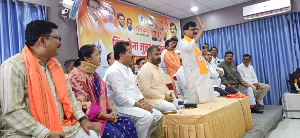 नारायणगाव येथील जयहिंद मंगल कार्यालयात शिवसेना उद्धव बाळासाहेब ठाकरे पक्षाच्या पदाधिकाऱ्यांच्या आयोजित मेळाव्यात खासदार राऊत यांचे घानाघती भाषण झाले.