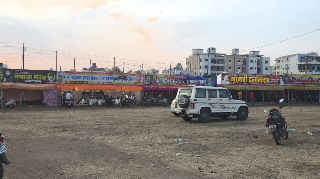 मालती इनामदार, काळू बाळू, विठा भाऊ मांग नारायणगावकर, भिका भीमा सांगवीकर, तुकाराम खेडकर सह पांडुरंग मुळे मांजरवाडीकर, मंगला बनसोडे, छाया खिलारे बारामतीकर, निलेश कुमार रूपाली पुणेकर, चंद्रकांत ढवळपुरीकर, आनंद लोकनाट्य तमाशा मंडळ, संध्या माने सोलापूरकर, दत्ता महाडिक पुणेकर, शिवकन्या बढे, दिपाली सुरेखा पुणेकर, अश्विनी पुणेकर, हिरामण ढवळपुरीकर आदी फड मालकांची या ठिकाणी या राहुट्या थाटल्या आहेत .